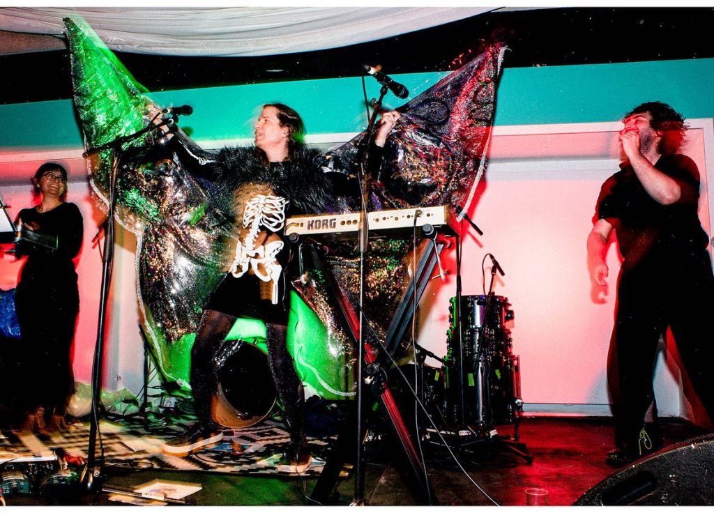 Wendy Miasma is NOT a pop robot from outer space. She makes lo-fi genre-skipping synth pop and has released several albums released through Cardboard Club and Liquid Library. The live show (with Tina Hitchens and Owen Chambers) has a lot of dancing, props and costume changes. Wendy’s music is queer, joyful, playful and silly.